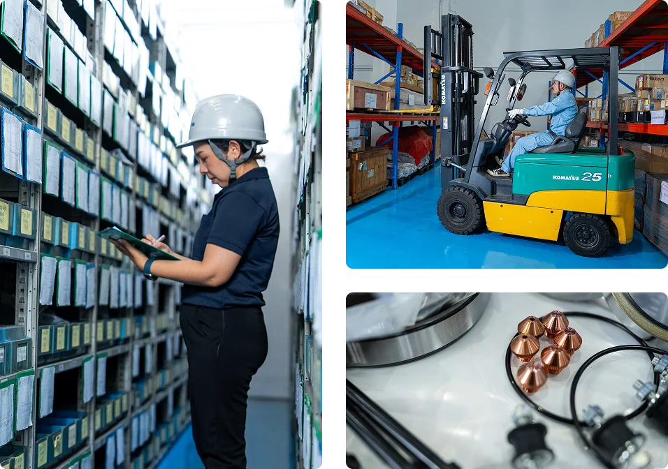 We have spare part in our stock both of Thailand and Japan for support our machine all around South East Asia. We supply a set of recommended spare parts which you should hold in stock, in order to reduce downtime due to missing parts.