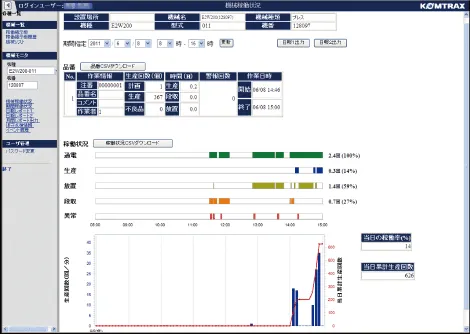 Operation data are graphically displayed in a time series. You can see transition of operation status and production numbers.
