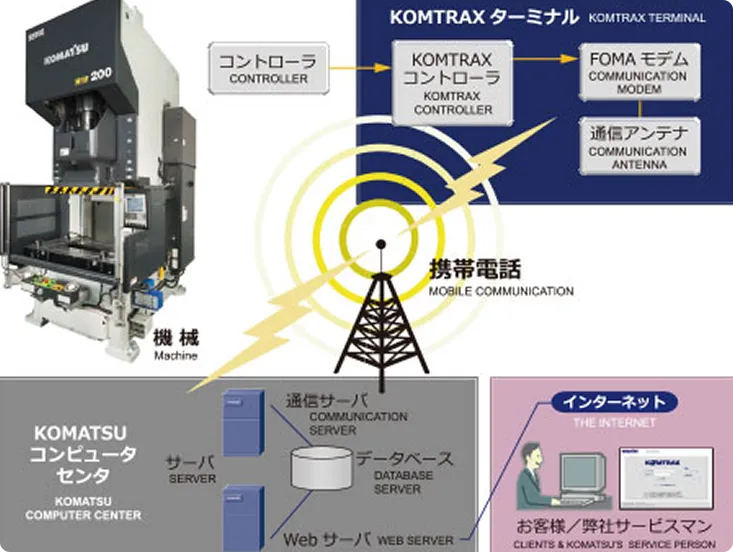 KOMTRAX is the system developed by Komatsu to check machine information remotely.